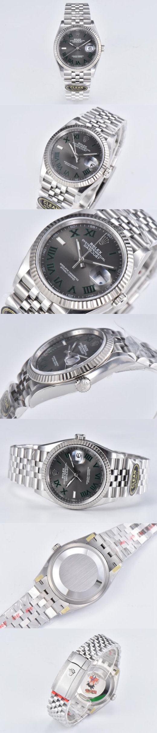 文字盤:グレー文字盤、ダークグリーンインデックス(ローマ字)、3時位置サイクロップレンズ(2.5倍)